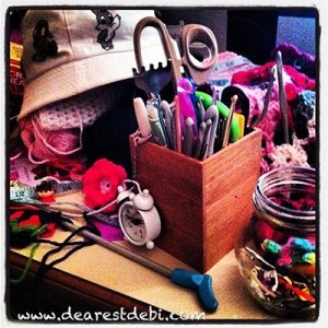 Hooker Stuff.. Hooker stuff.. All the stuff a hooker needs. Some wips (works in progress) and chains. I’m sure there are some UFO’s (Unfinished Objects) flying around and I did hear the faint sounds of frogs saying “rip it, rip it..” today. But I learned something new! A fish bowl full of stitch markers, metal yarn needles […]