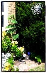 June 9th (yesterday) was international yarnbombing day. I didn’t have much time to do anything because of company coming over so I whipped up a spider web for our spider tree out front, my son loves it!