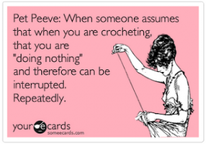 Shhh.. Counting I made this up last night.. I know she’s not crocheting, looks like she’s sewing, but it was the closest image available.